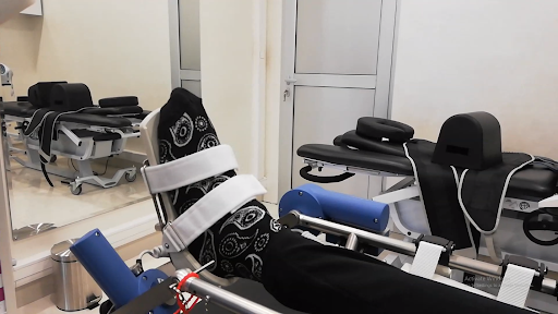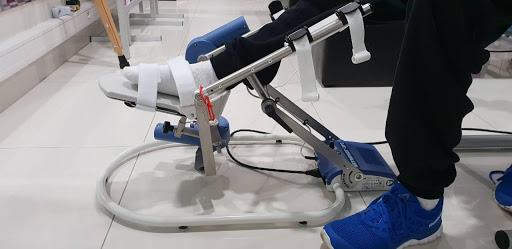 U međuvremenu, pacijent je sazno za naše CPM robote i došao je kod nas odmah nakon skidanja imobilizacije. Na pregledu koji je obavila dr Desanka Mitrović konstatovano je da pacijent ima otok oko desnog skočnog zgloba. Savijanje stopala na gore (dorzofleksija) bila je aktivno minimalna, skoro da je nema. Drugim rečima, pacijent nije mogao da savije stopalo prema sebi. Nakon š e s t puta po sat vremena terapije na CPM Robotu za skočni zglob otok je nestao, a pacijent je dobio pun obim pokreta.